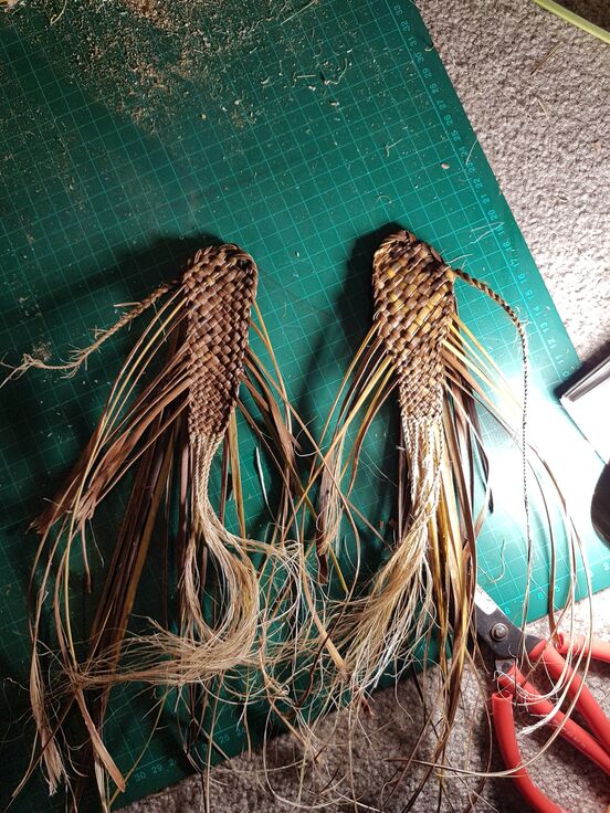 The names of the atua in the titles – Ngai-kore-tua-mao (many climates) and Rewa-taha (many soils) – are tūpuna in the whakapapa of the tī kōuka retold by Hohepa Delamere (Te Whānau-ā-Apanui). These atua gifted the tī kōuka the ability to adapt and thrive in different climates and soils.² Our tūpuna figured out how to harness these abilities by transforming the leaves into pāraerae, which transposes the ability onto the wearer’s body. The pāraerae allow the wearer to walk almost anywhere, including rough, sharp, rocky terrain such as reefs and alpine routes.
