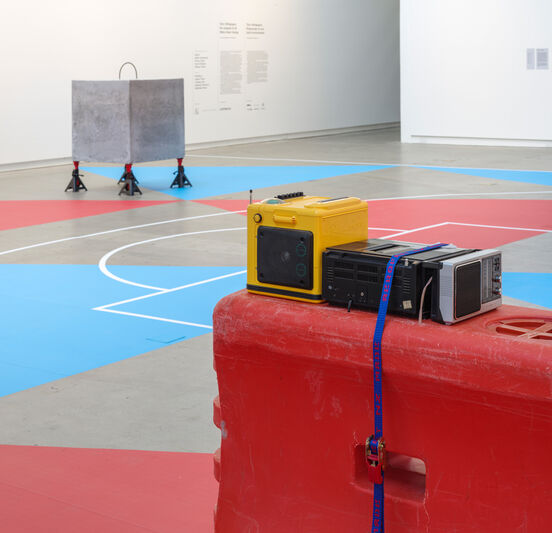 Installation view of Wayne Youle's project Here Today, Gone Tomorrow and Back Again the Day After That, 2021, at CoCA Toi Moroki, Ōtautahi Christchurch, exhibiting as part of Toro Whakaara: Responses to our built environment presented by Architectus.