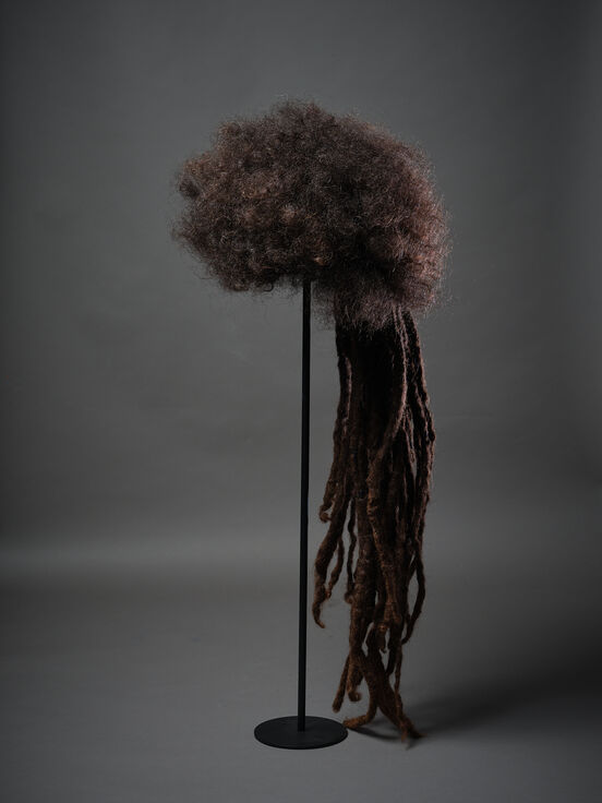 The impact of colonization has meant ulumate traditions have become dormant, with surviving ulu cavu only existing in museum collections and historic photographs. Na Tolu, an artist collective formed by Joana Monolagi, Ole Maiava and Daren Kamali, has been revitalising the practice of ulumate through research informed by institutional collections. Their investigation has resulted in the creation of the first modern-day mourning wig, on display as part of The Ulumate Project.