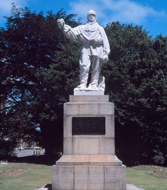 The statue of Robert Falcon Scott along the Avon River in Christchurch (Image: Getty Images)