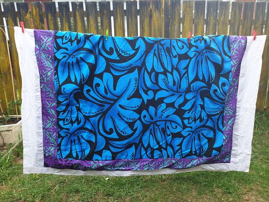 I received it some years ago, as part of a Christmas gift from my partner. I won’t lie, I was grateful but equally perplexed as I’d presumed that ie pili were gifted during ceremonial events or passed down through families. Suffice to say, my interest was piqued and on went the curatorial brain. I needed to know every detail leading up to the decision of this gift so my long-suffering partner gave me the full break down: He explained his rationale around the selection of materials from different stores in Ōtahuhu and Ōtara, to the development of his loose design and then how it was sewed together by a woman at his family church.