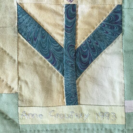 If the date 1993 wasn’t embroidered on the front I’d probably still guess it from the fabrics. As a textile historian, I’ve built up a feeling for knowing what era a fabric comes from even when the actual print is unfamiliar, the same way you can see a photo of a street you’ve never visited but still instinctively know that it’s in a town you’ve lived in. There’s something about washy hand-dyed fabrics and the colour mauve which scream “early nineties”. Even quilts go through fashions, although they might seem unchanging and traditional.