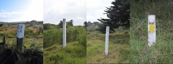 “Do not dig” marker posts at Muriwai Beach. Image: Bronwyn Holloway-Smith, 2015.