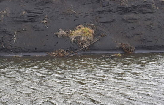 A historic cable, emerging from the sand above the Okiritoto Stream, Muriwai. Photo: Bronwyn Holloway-Smith, 2015