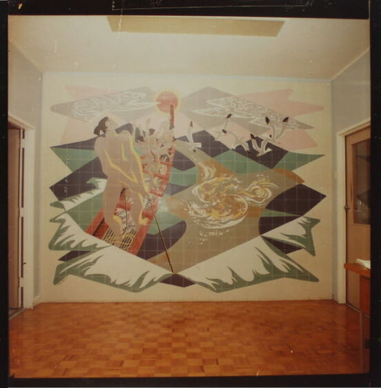 As I dug deeper into the context of its story, the mural became a symbol of the dramatic shifts that had taken place since its commissioning, in terms of both New Zealand’s international communications infrastructure and its concept of national identity. Despite the wide uptake of the domestic telephone network during the 1950s, New Zealand’s expensive international telecommunications infrastructure only heightened a sense of geographic isolation among its residents. The Commonwealth Pacific Cable (COMPAC) was a new telephone cable introduced to address this problem. It was celebrated as a triumph for the small nation that craved more reliable links to the rest of the globe, particularly for Pākehā settlers who, despite their ‘nation-building’, were still looking abroad for cultural validation.