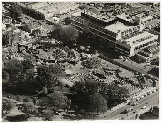The early stages of construction of the Christchurch Town Hall. Photo © Christchurch Star. Obtained from the collection, and used with permission, of Christchurch City Libraries. CCL-STARP-02781A