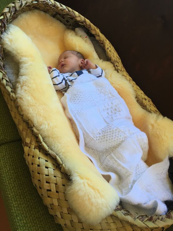 The mokopuna (grandchild) pictured is Pikia. Her whānau (family) gathered together to wānanga (forum) at Te Noho Kotahitanga marae in 2017, in preparation for her birthing into Te Ao Mārama (the world of light). Her nannies, aunties, māmā (mum) and pāpā (dad) were there. Together they gathered and prepared harakeke (flax), and wove with their hands, kōrero (discussion), laughter and aroha (love), her wahakura. Tipu mai, mokopuna mai e Pikia.