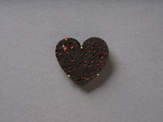 Warwick Freeman, Rangitoto Heart, 1992, scoria, paint, gold, oxidised silver, 5.2 x 5.7 cm. Photograph by Sam Hartnett, courtesy of the artist and Objectspace.
