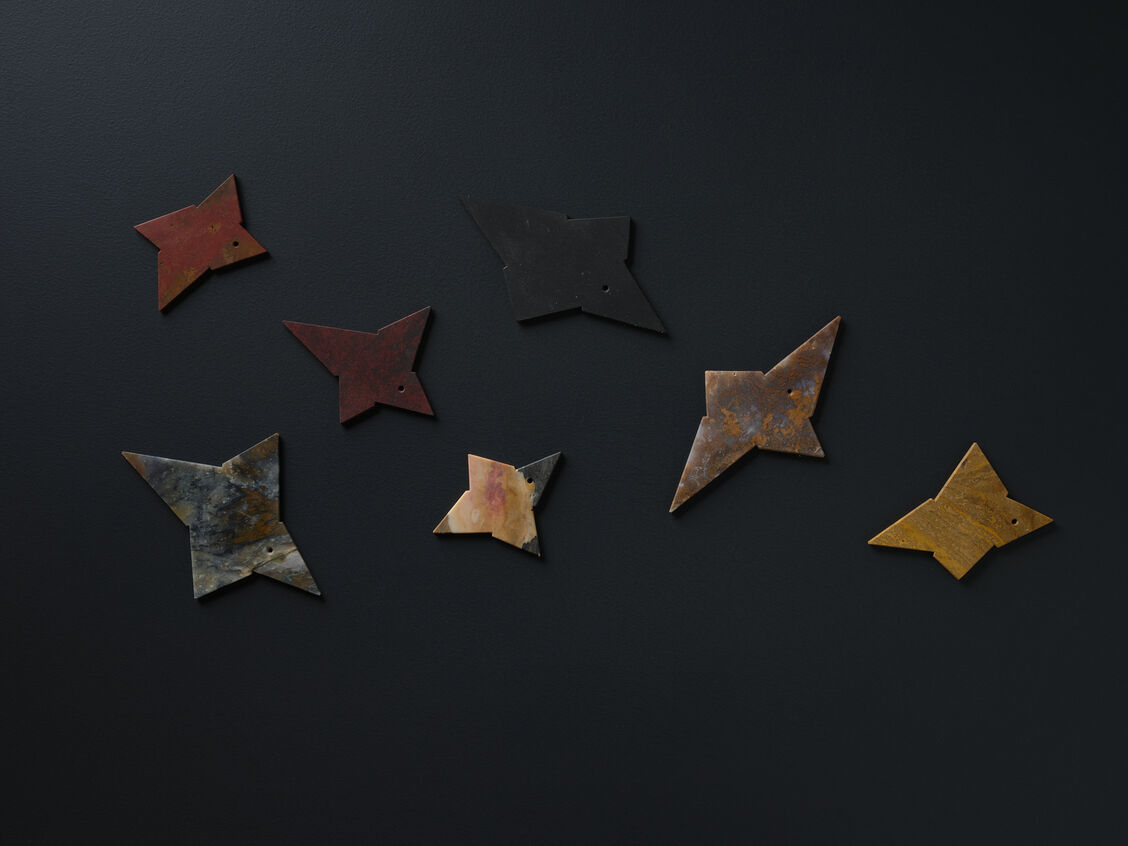 The four nouns that form the title of this exhibition are inspired by Freeman’s first stand-alone grouping of emblems from 1987, the four-piece ‘poem’, Fern Fish Feather Rose. This significant work catalysed Freeman’s thinking about the power of assembling recognisable forms that could communicate their stories in lieu of words.