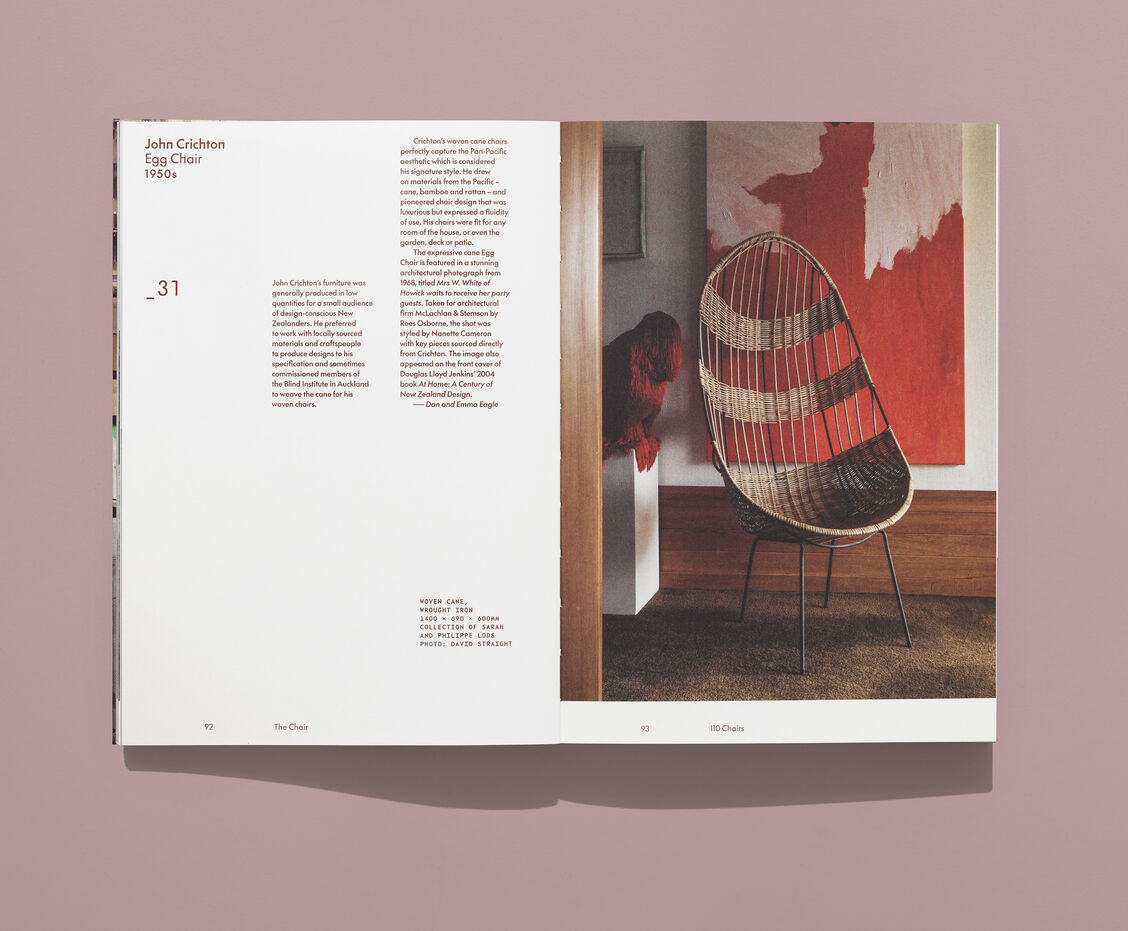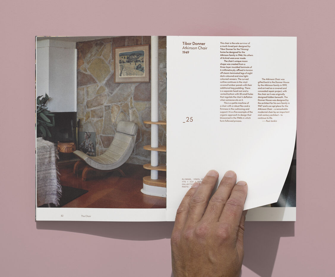 Exquisitely designed and rich in full-colour images, The Chair features new writing on the 110 chairs included in the exhibition and photography taken across the country: together telling a fascinating story of design and making in Aotearoa.