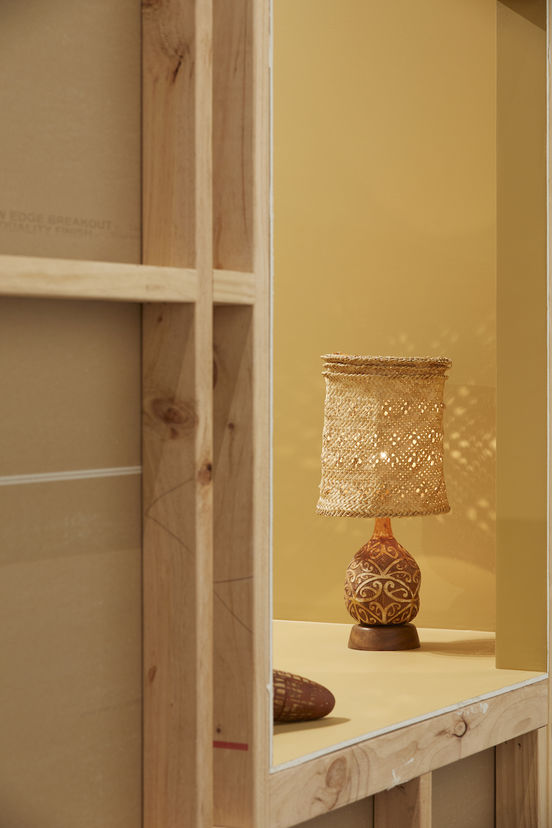Within a series of interconnected built structures designed by Knight Associates, curator Justine Olsen and jeweller Karl Fritsch, design writer Emma Ng, curator Ane Tonga and artist Ani O’Neill, and interior designer Rufus Knight with architect Mijntje Lepoutre each present an interior scene for The Room.