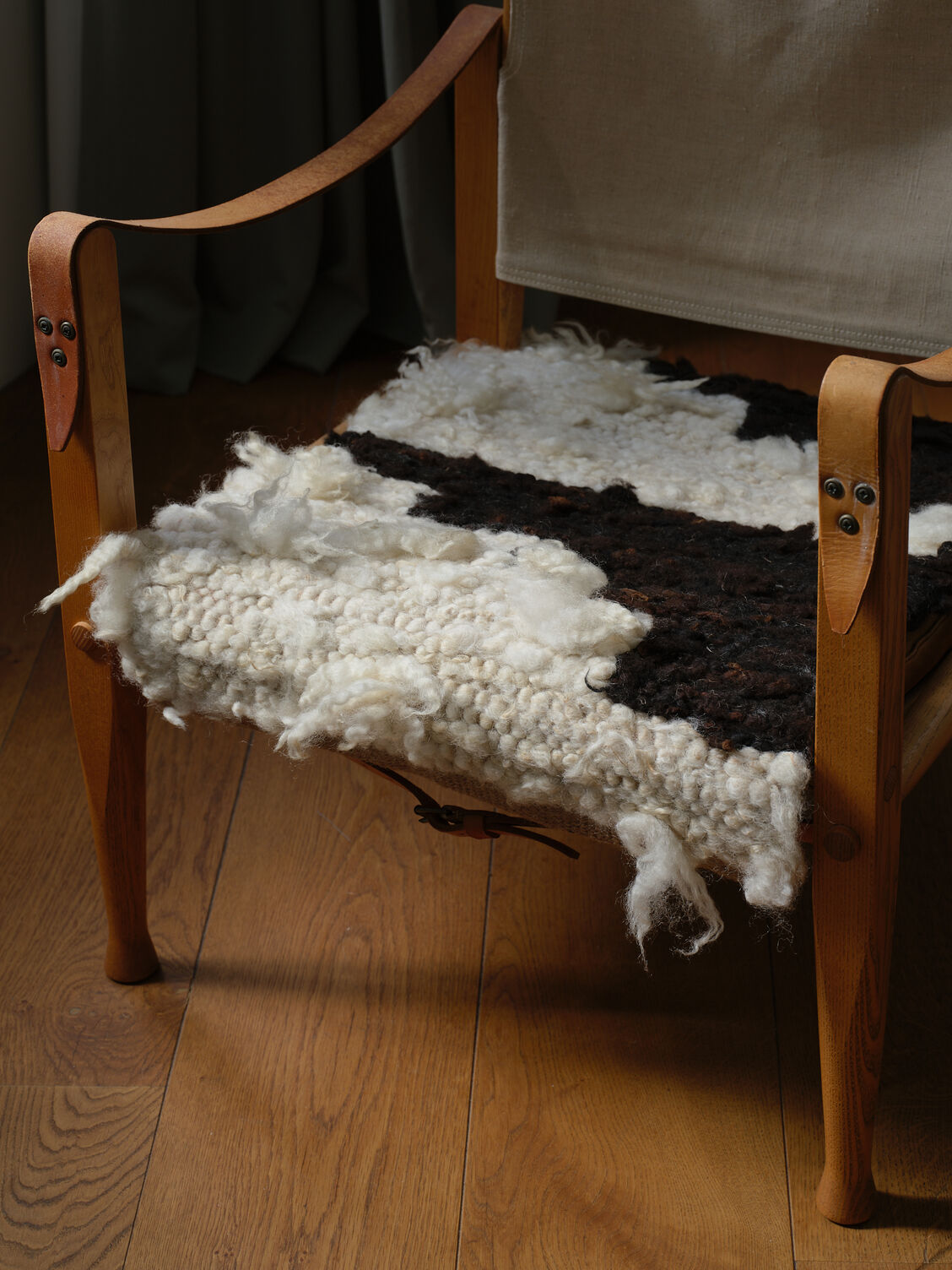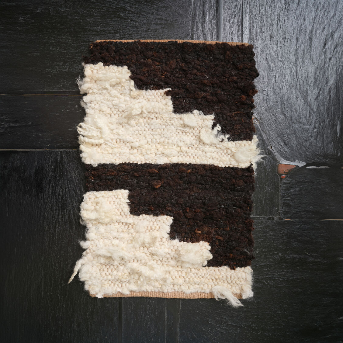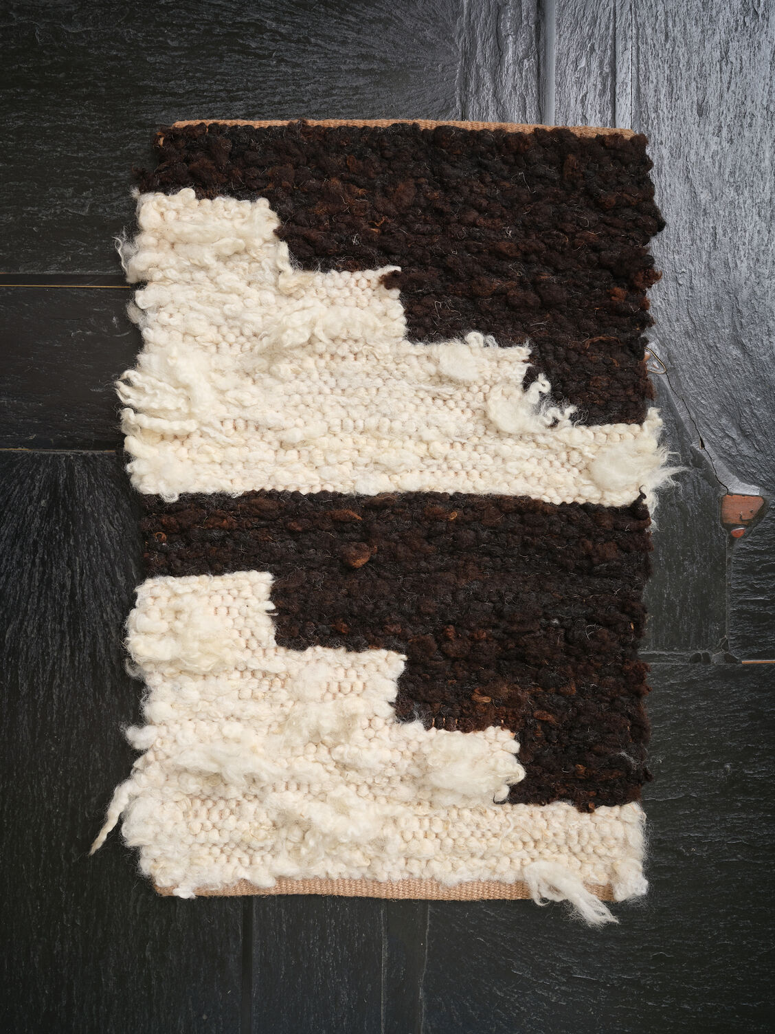 Hand-processed wool fleece from pet sheep, cotton warp