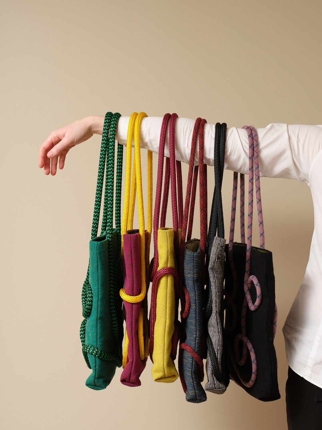 For Objectspace six iconic rope bags with a novel eyelet — O for O Space. And wait for it... 12 fire hose phone pockets, could there be a bag more desirable for these tumultuous modern times.” – Kim Paton