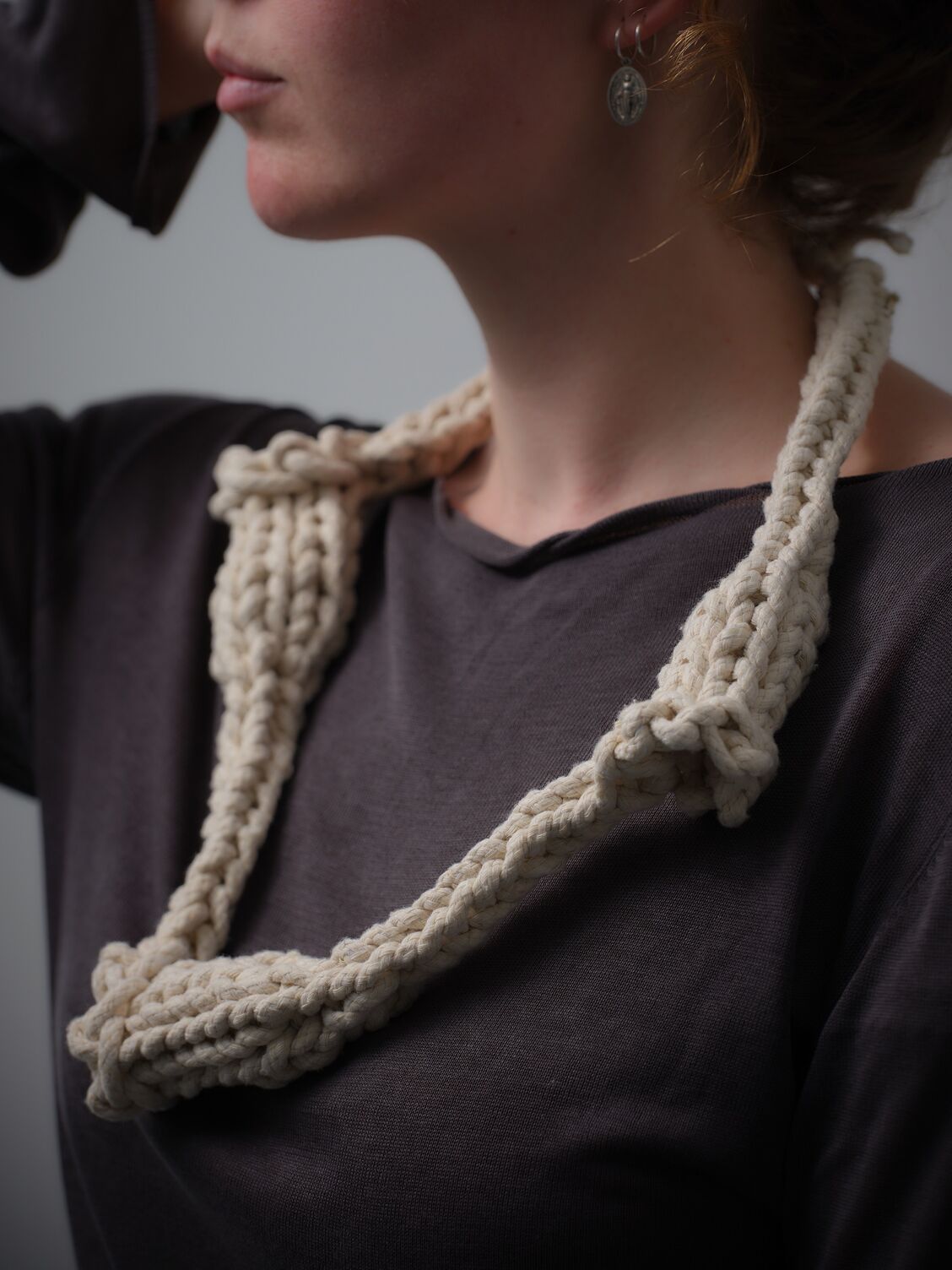 Ferrier has recently exhibited at Te Uru, The Sarjeant Gallery and The New Zealand Maritime Museum. His work is in public and private collections in Aotearoa. For Objectspace, Ferrier has created a series of rope garlands intended to be worn. These works are the logical progression of decorative knot work, reimagined as adornment.