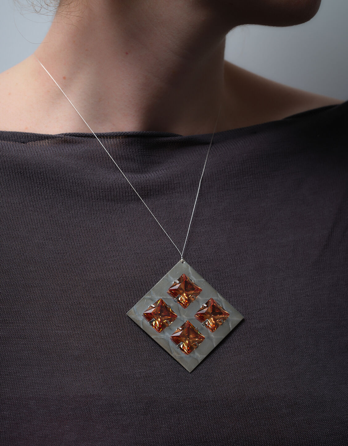 Your new Diamond-Square pendant with blinging champagne gems. An immaculate conversation starter.