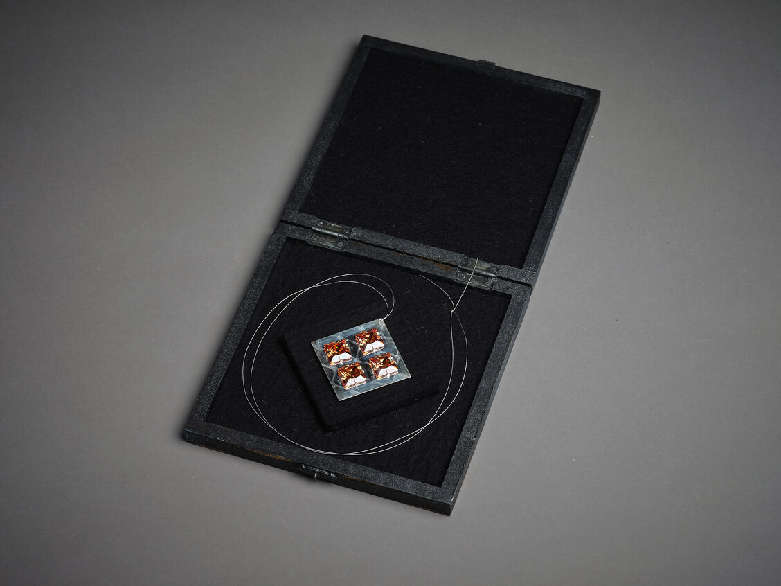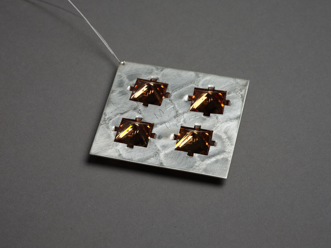 Moniek writes: 'My work explores different possibilities at different times, often evoking a sense of riffed nostalgia, slippage, and mystery. I reference my everyday landscape and the built environment, whether that be digital or physical. I am also interested in the dual. ‘The jewel and the object’, ‘jewellery and the other’, in which I combined different artistic practices into the realm of jewellery such as printmaking, darkroom photography, sculpture, painting and holography.'