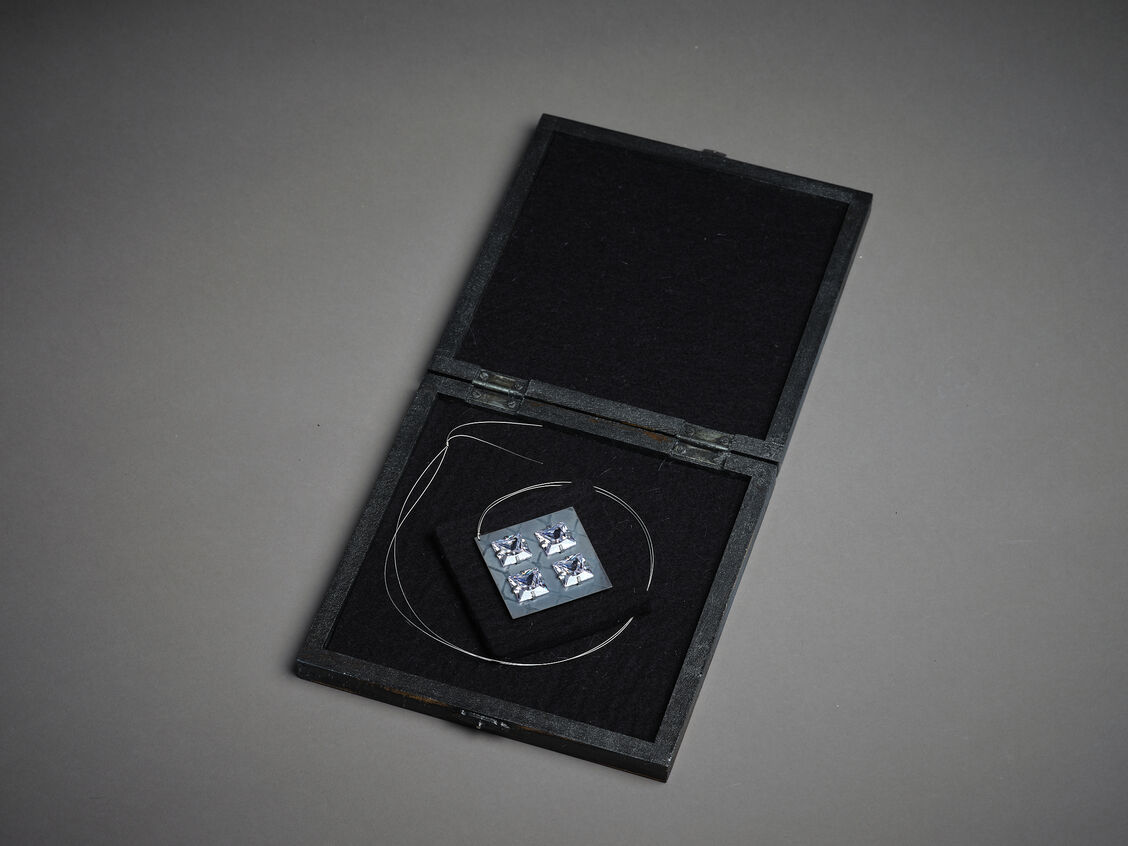 Moniek writes: 'My work explores different possibilities at different times, often evoking a sense of riffed nostalgia, slippage, and mystery. I reference my everyday landscape and the built environment, whether that be digital or physical. I am also interested in the dual. ‘The jewel and the object’, ‘jewellery and the other’, in which I combined different artistic practices into the realm of jewellery such as printmaking, darkroom photography, sculpture, painting and holography.'