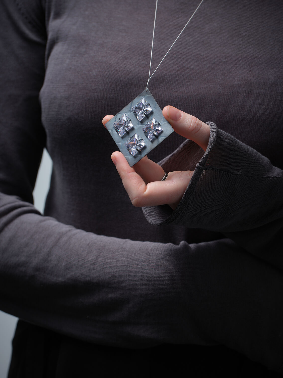 Your new Diamond-Square pendant with white gems and an oxidised finish. Rock'n'roll but refined.