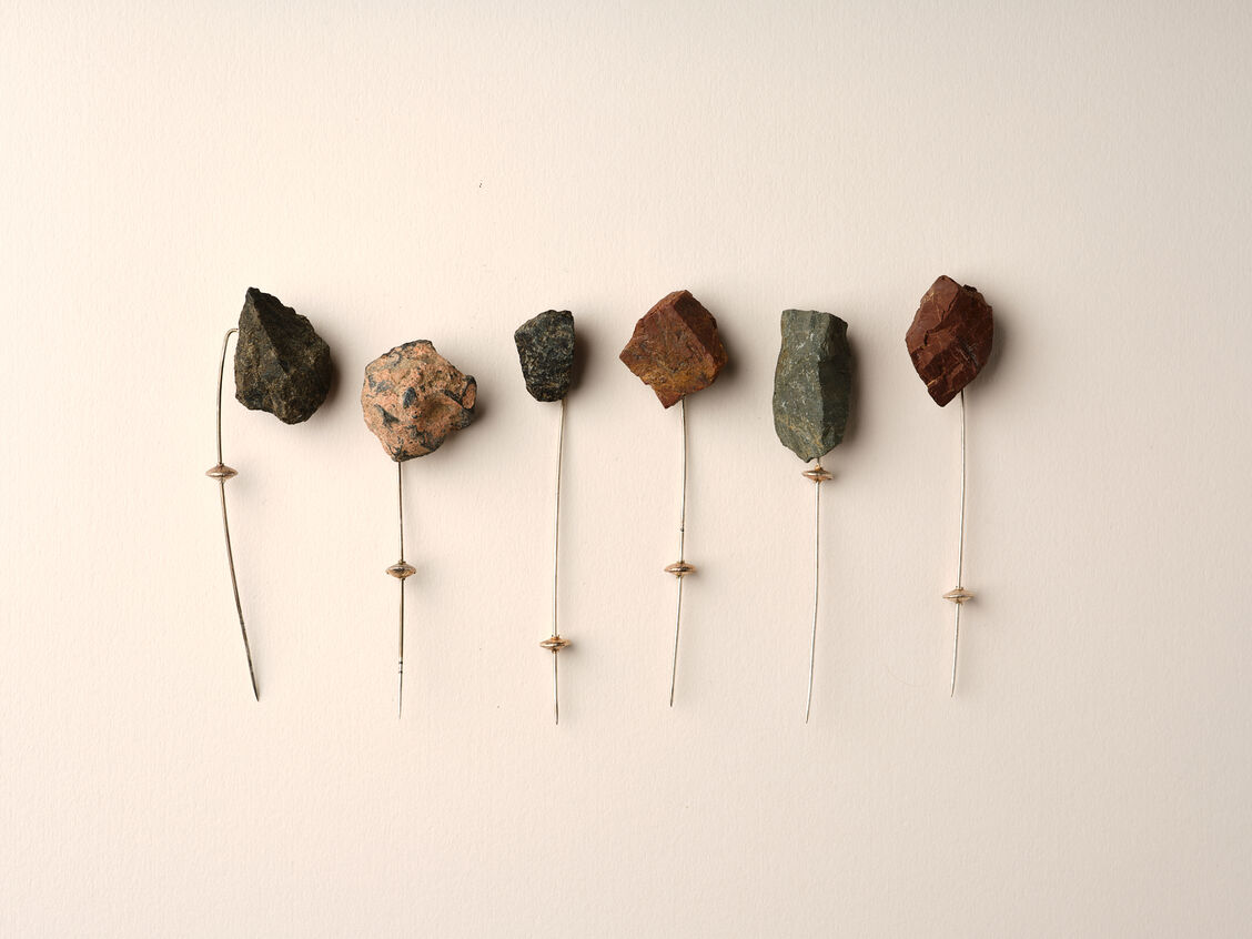 For Objectspace, we have 25 of Preston’s Road Works Pins, not made for us as such, much better than that... discovered on a studio visit amidst his glorious collection high up on his Muriwai maunga. Made since 2001, these brooches chronicle Preston’s enduring connection with the rock found underfoot. In this case the humble chips of greywacke that form our weaving map of roads.
