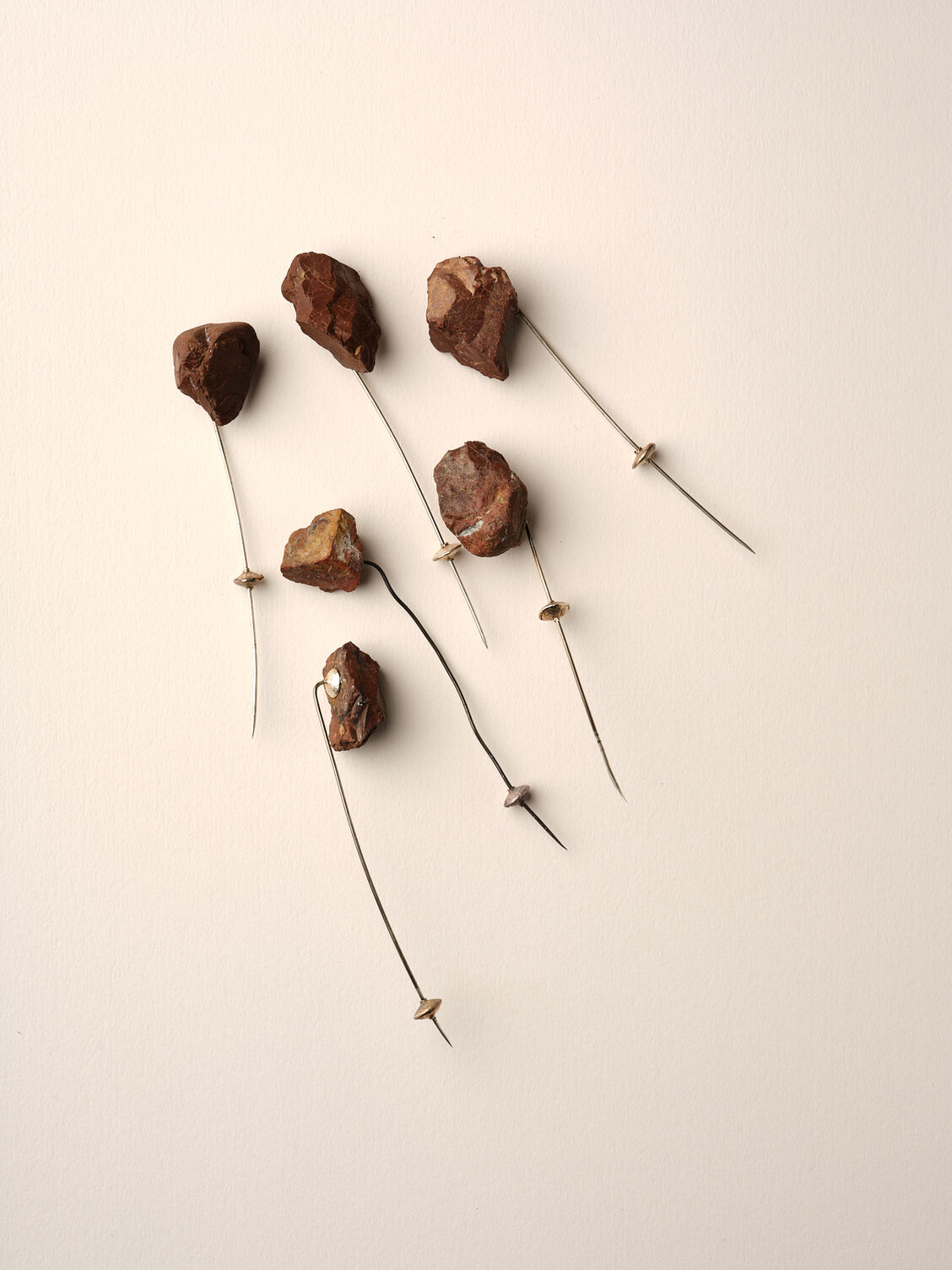 For Objectspace, we have 25 of Preston’s Road Works Pins, not made for us as such, much better than that... discovered on a studio visit amidst his glorious collection high up on his Muriwai maunga. Made since 2001, these brooches chronicle Preston’s enduring connection with the rock found underfoot. In this case the humble chips of greywacke that form our weaving map of roads.