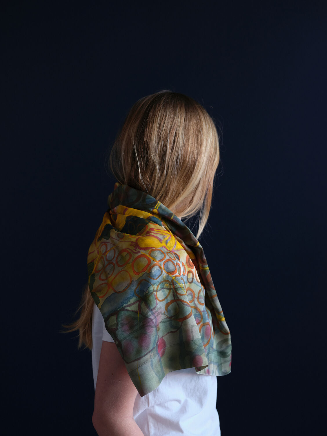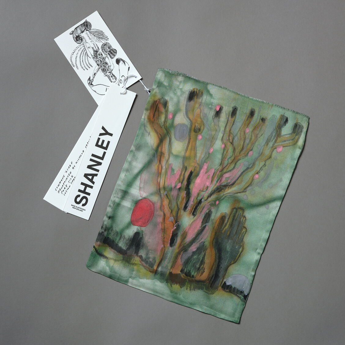 The collaboration between Shanley and the label Kārena/Carran has grown from a friendship formed in Ōtepoti. These scarves are a small part of a wider body of work that continues to unfold; posted back and forth between Portobello and Lyttelton. With many years as solo practicing artists the two find great satisfaction in communication and in the knowledge some ideas need more than one personality in order to exist.