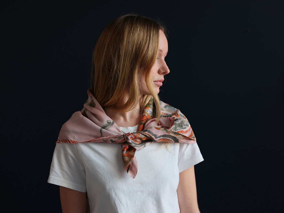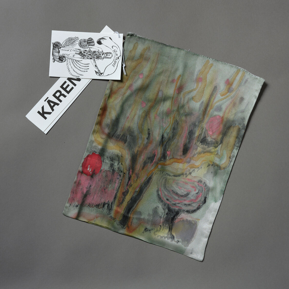 The collaboration between Shanley and the label Kārena/Carran has grown from a friendship formed in Ōtepoti. These scarves are a small part of a wider body of work that continues to unfold; posted back and forth between Portobello and Lyttelton. With many years as solo practicing artists the two find great satisfaction in communication and in the knowledge some ideas need more than one personality in order to exist.