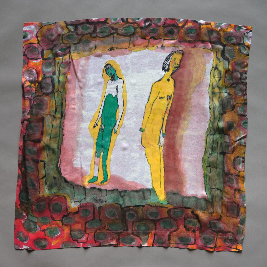 “If the cosmic union between two artists is just right... an alchemic magic can materialise. Nichola Shanley and Bekah Carran have been collaborating on cloth for 2 years. Ten scarves for Weekly Objects are a call and response that draw a connecting line between two verdant peninsulas – Shanley in Lyttelton and Carran Portobello. Paintings that appear to be drawn from the soil, sea and the flesh. Distant landscapes and bodies figure; all right there, but just out of reach. These works are exceptional and mighty. Worthy of any wall or to be righteously worn.” – Kim Paton