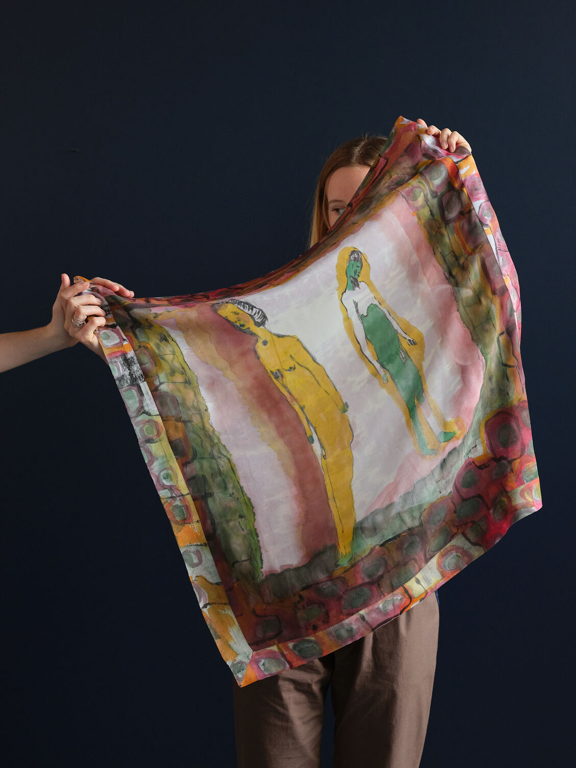 The collaboration between Shanley and the label Kārena/Carran has grown from a friendship formed in Ōtepoti. These scarves are a small part of a wider body of work that continues to unfold; posted back and forth between Portobello and Lyttelton. With many years as solo practicing artists the two find great satisfaction in communication and in the knowledge some ideas need more than one personality in order to exist.