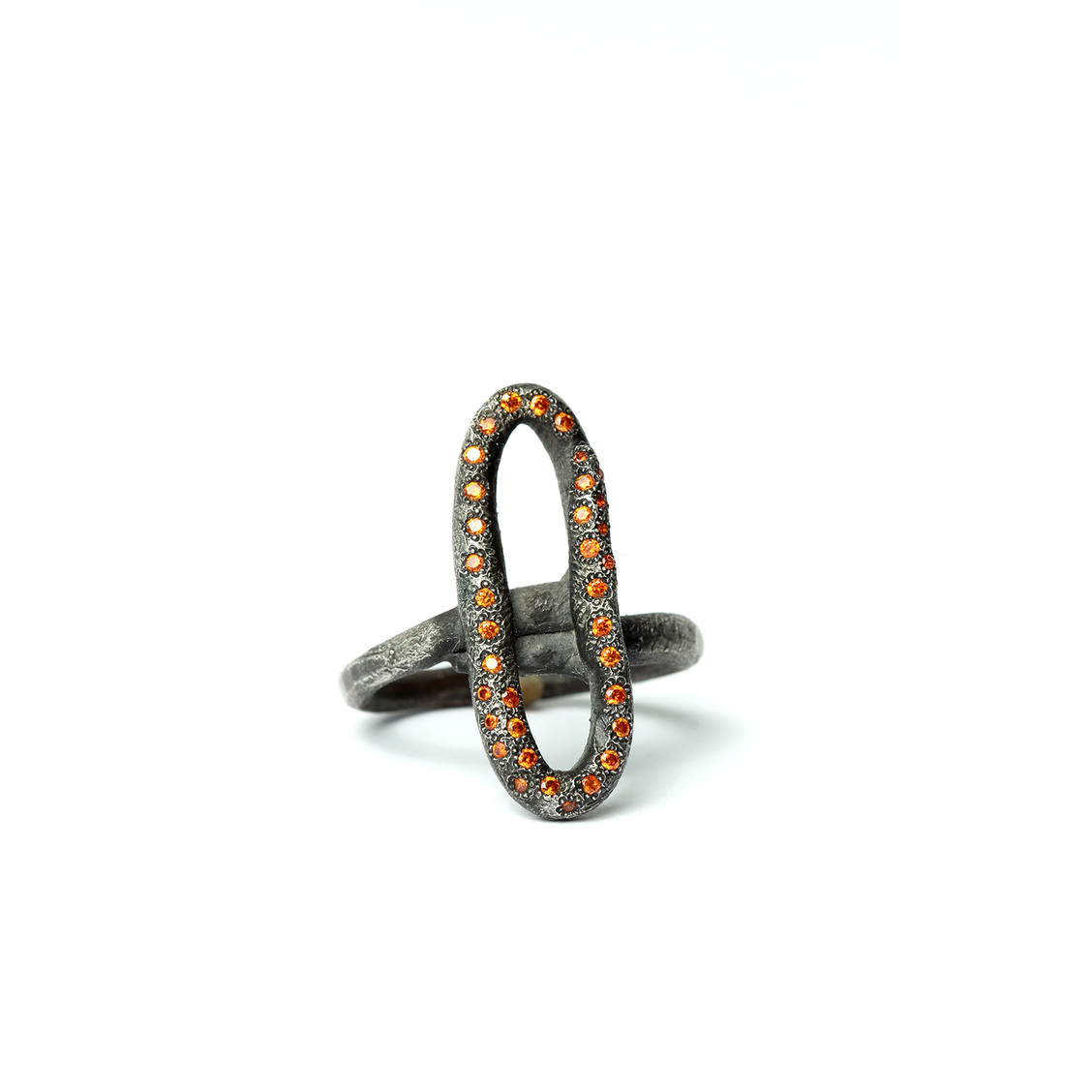 Materials: Silver, orange ynthetic padparadscha (cubic zirconia)