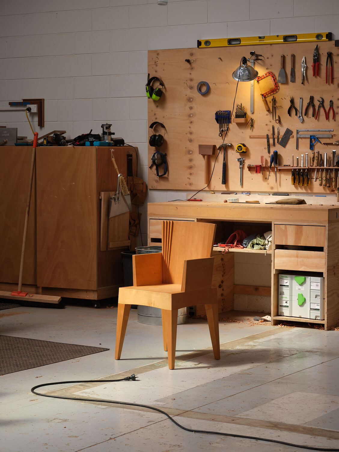 Sam Hartnett has spent the last two decades capturing small moments in the spaces that we occupy. Fleeting moments and encounters are rendered as quiet markers for all that’s worth remembering. For Objectspace eight chair portraits taken during research trips for an exhibition whirring into life. An exhibition telling a story of design and making in Aotearoa through a single object – the chair. Captured with clarity, these objects are singular for their design and storytelling, each crafted and made with the hands. Sam documents them in workshops, lounges and fish and chips shops. Each a tribute to their maker, an emblem for an exhibition in the making, and of course, an ode to the simple joy of good design.” – Kim Paton